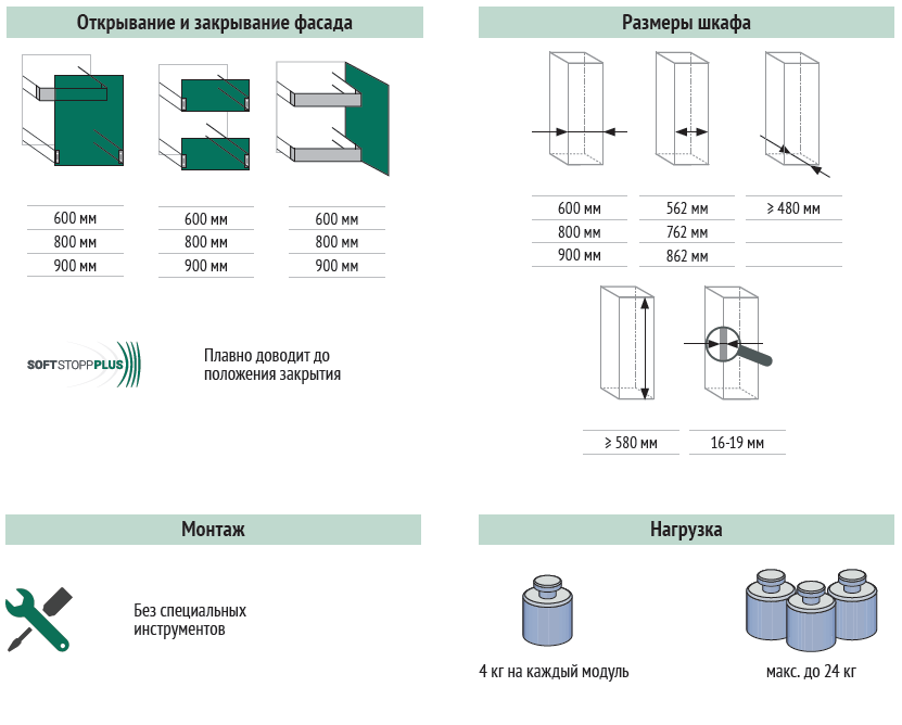 - 1 большой модуль для посуды + 1 малый модуль с решеткой + модуль для столовых приборов