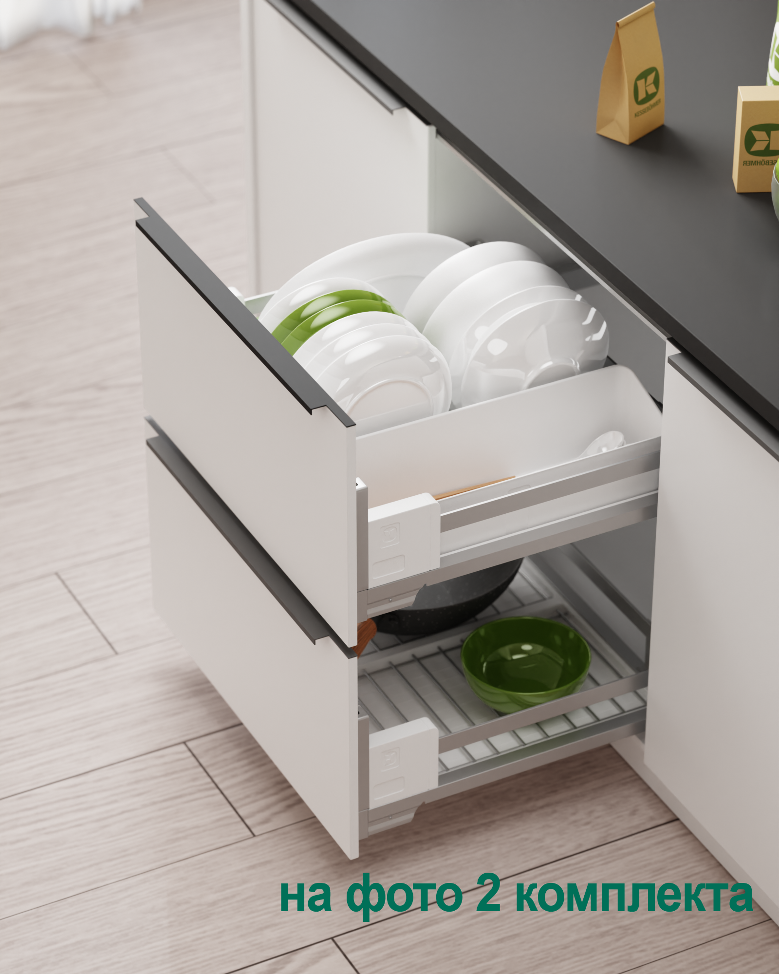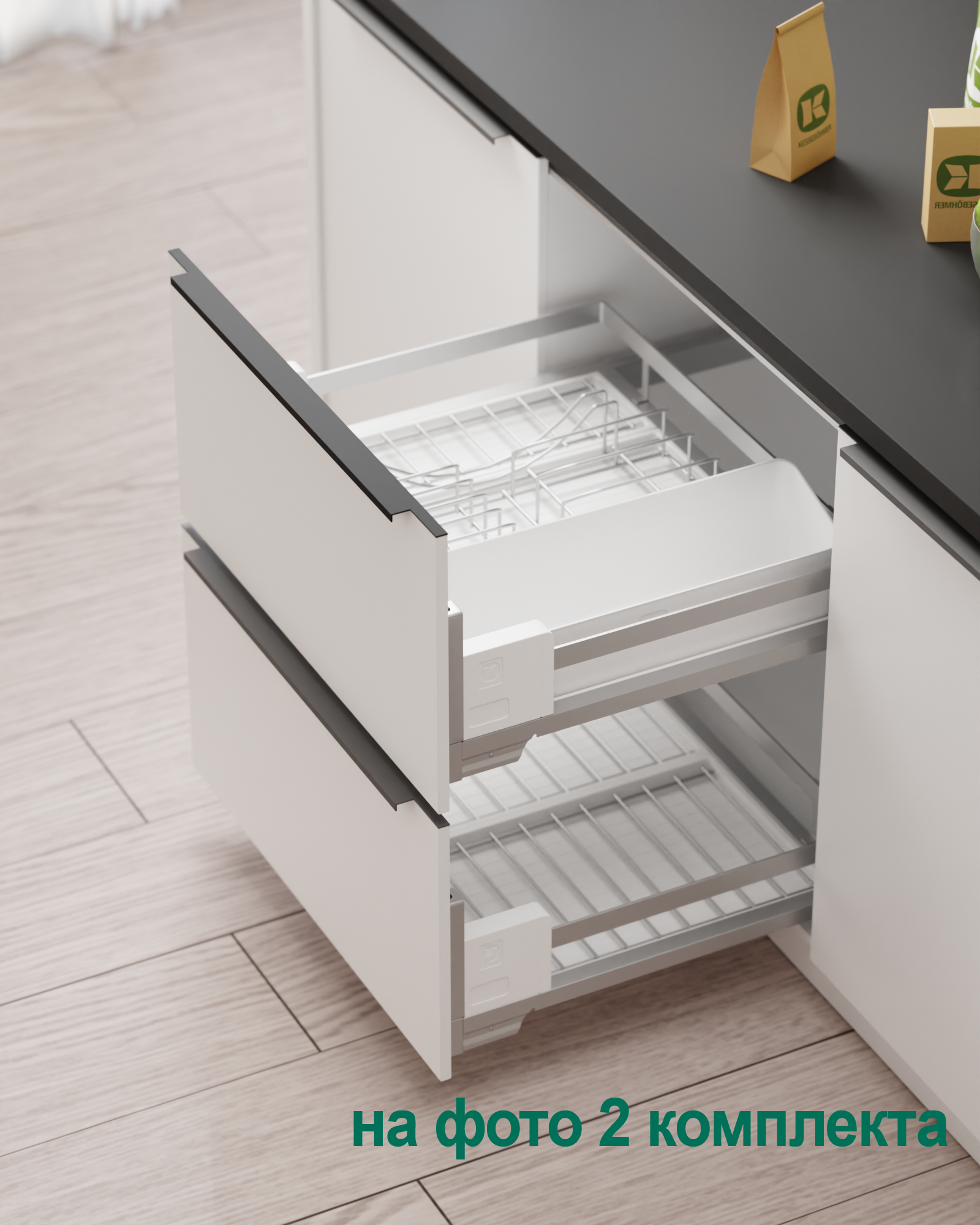 - 1 большой модуль для посуды + 1 большой модуль с решеткой + модуль для столовых приборов