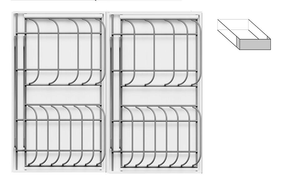 2 модуля для посуды большие (423 x 248 мм, каждый модуль состоит из 1 х держатель металлический, 1 х поддон пластиковый, 2 х защелка-ограничитель)