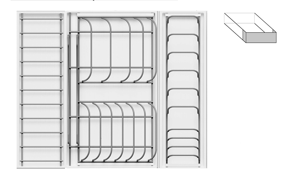 • 1 большой модуль для посуды + 1 малый модуль с решеткой + модуль для столовых приборов