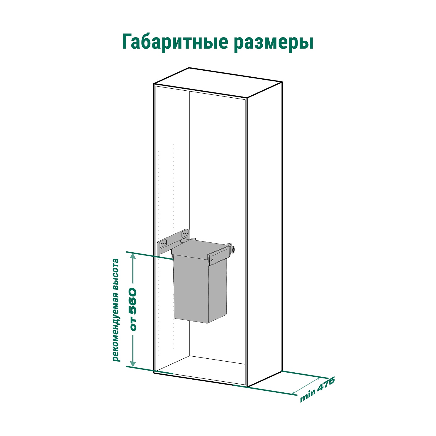 Комплект односторонний выдвижной с широким мешком для белья Конеро W 457 мм D 475 мм