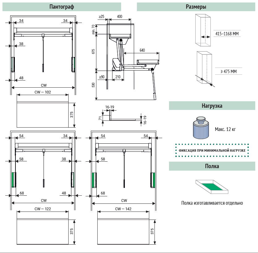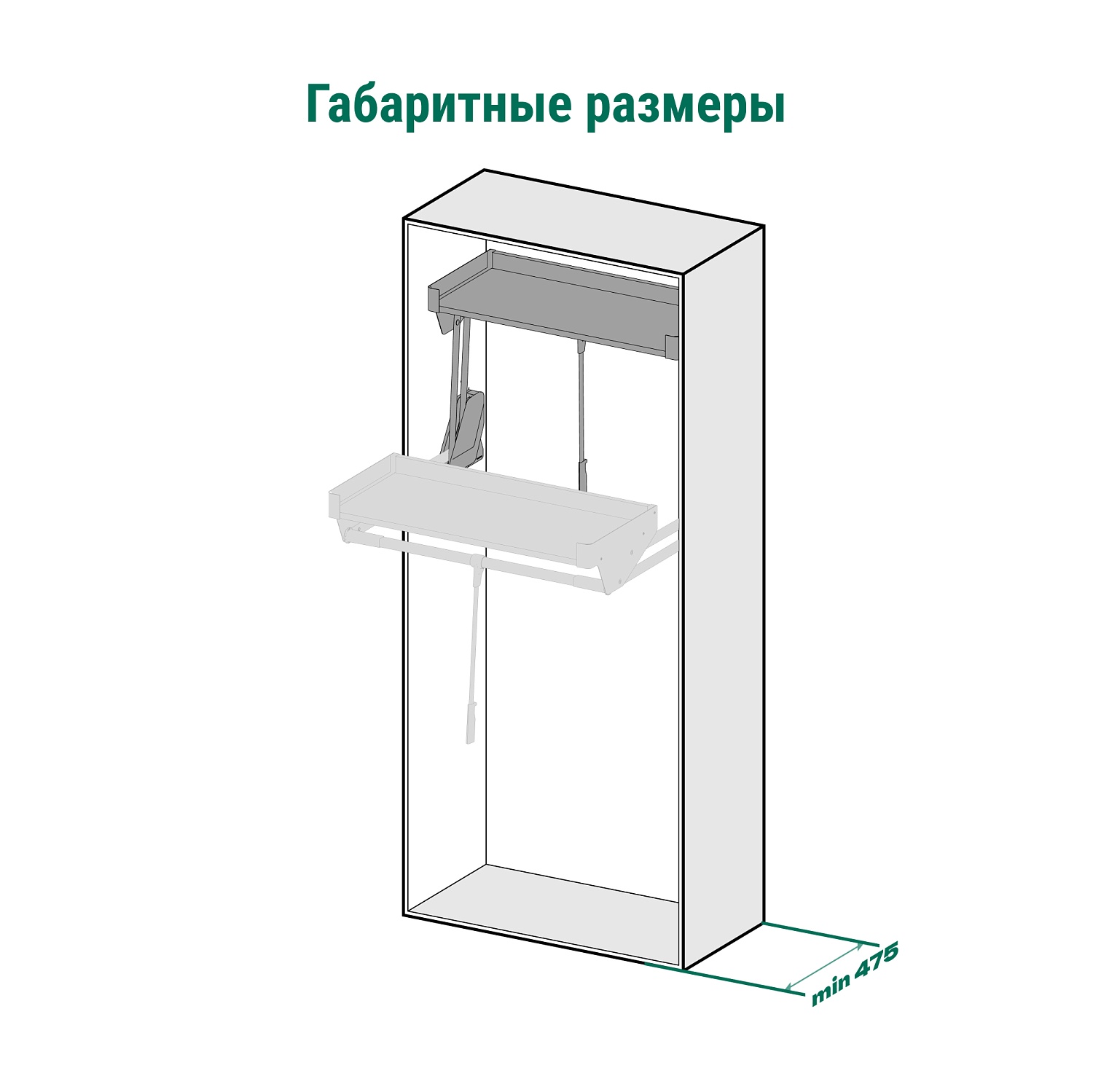 Общая нагрузка на механизм включает в себя: полезная нагрузка + собственный вес механизма 2 кг (максимальный вес ручки-тяги и штанги для одежды).