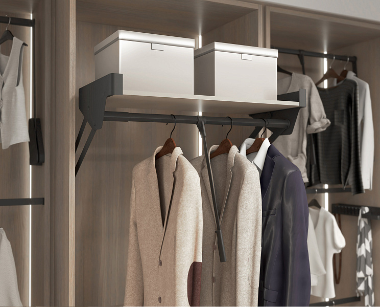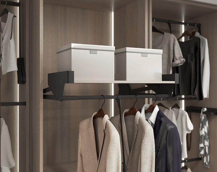 Пантограф с полкой в гардеробную Конеро состоит из: